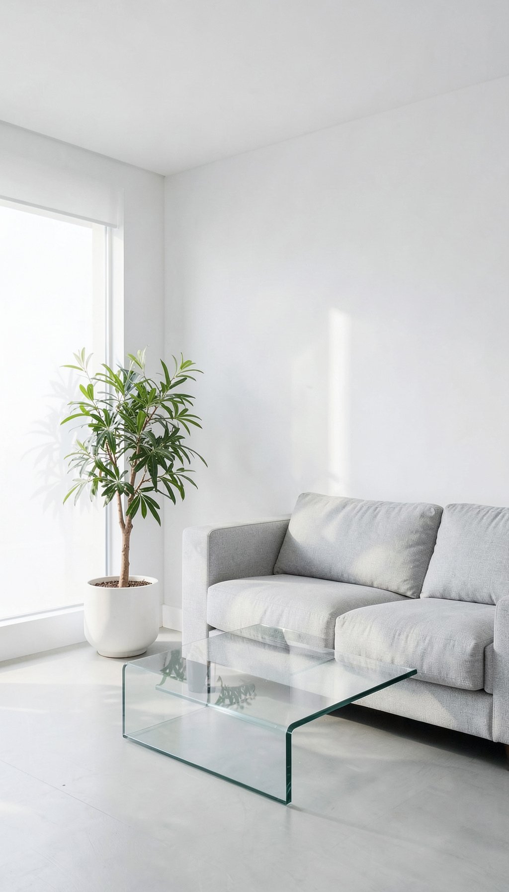 Un fondo de sala minimalista en tonos blancos y grises que transmite tranquilidad y orden. Ideal para quienes buscan un toque elegante y relajante en la pantalla de su móvil.